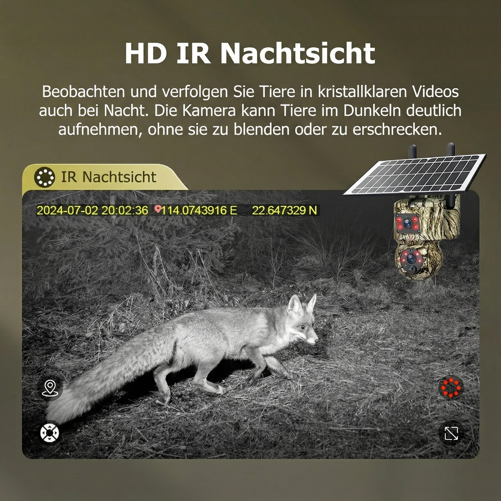 Nachtsicht ist richtig stark, selbst bei Nebel sieht man noch was. Die Kamera dreht automatisch hinterher – das ist schon praktisch, wenn Wild vorbeizieht.