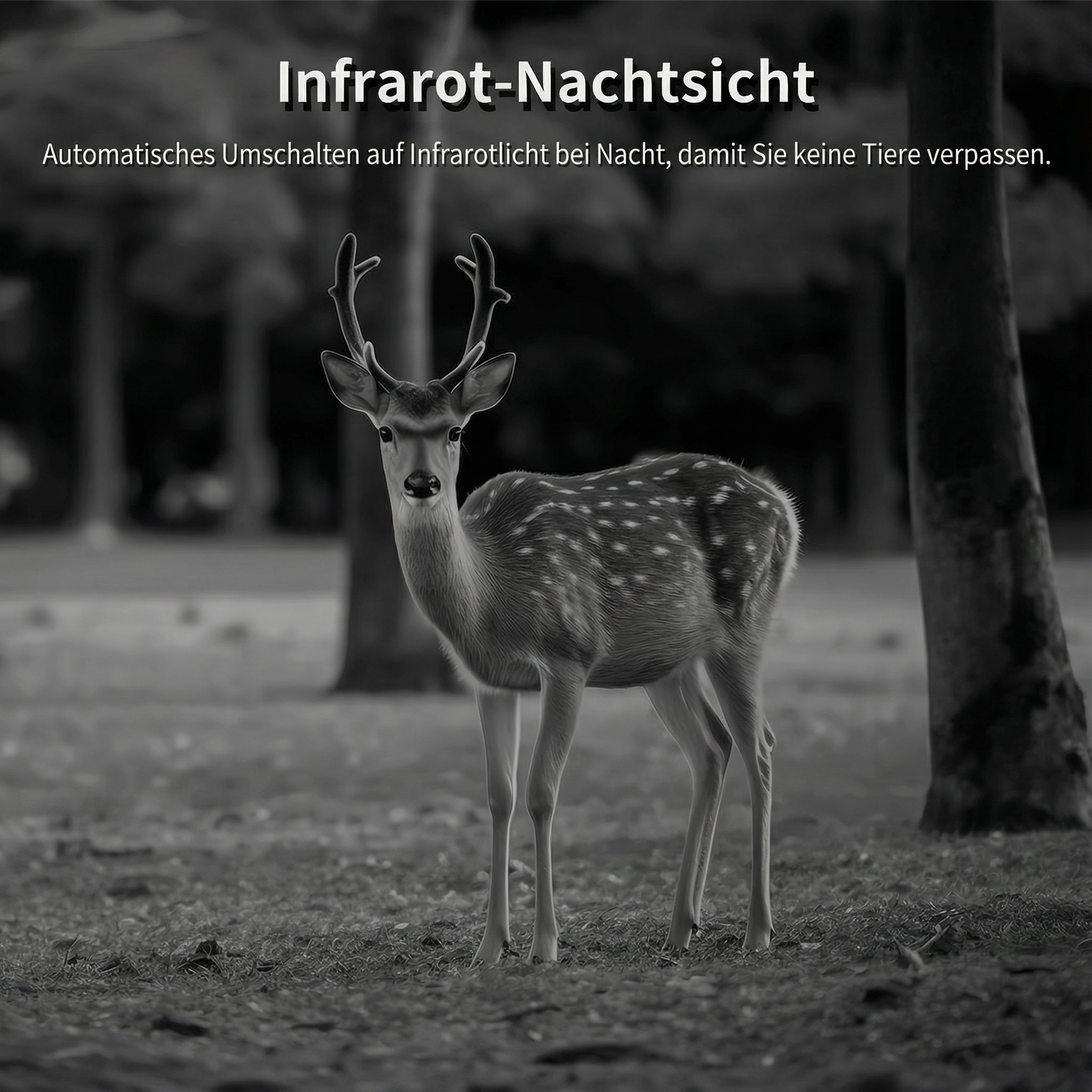 Bei Dunkelheit kommen sechs 940 nm IR-LEDs zum Einsatz. Diese sind komplett unsichtbar und erzeugen klare Schwarzweiß- oder Farbbilder bis zu 50 Meter – ohne Blitz.