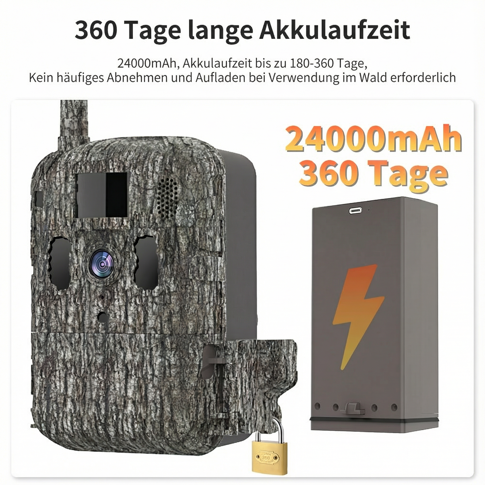 Mit dem 24.000 mAh Akku arbeitet die Kamera bis zu 5 Monate ohne Aufladen.