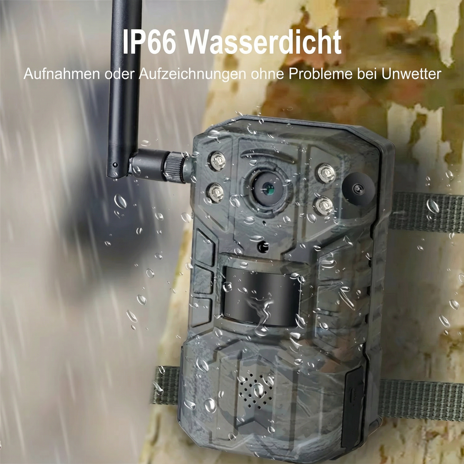 Die integrierte 7.800 mAh Batterie ermöglicht über 45 Tage Betrieb ohne Aufladen. Ein mitgeliefertes 4W-Solarpanel gewährleistet kontinuierliche Energieversorgung – auch bei schwachem Sonnenlicht. Die IP66-zertifizierte Bauweise schützt zuverlässig vor Regen, Staub und Temperaturen bis -30 °C.