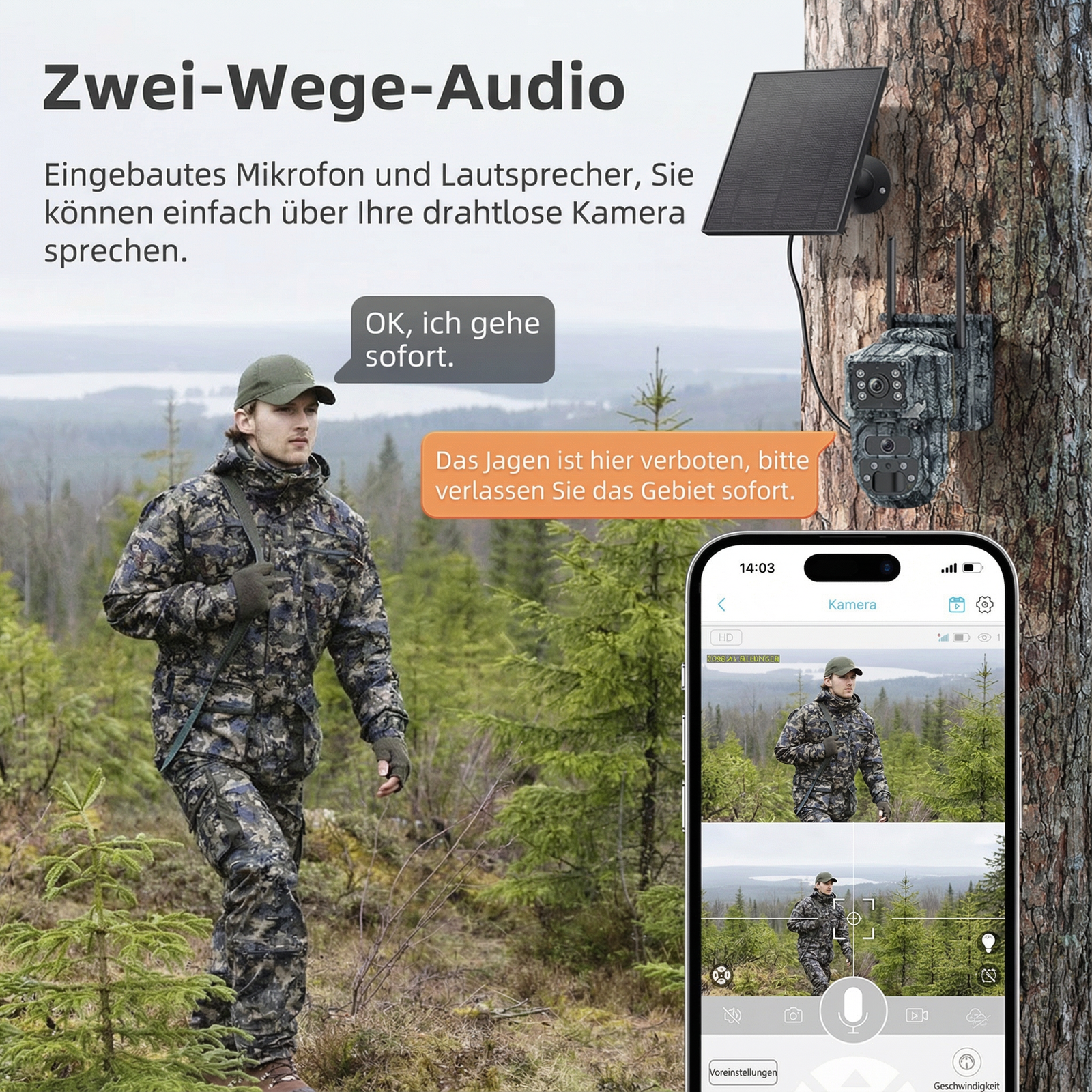 Bidirektionaler Audio: sprechen & zuhören direkt über die Kamera